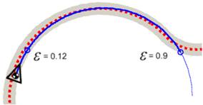 When the UGV is allowed to travel further the epsilon value increases. A gain table for scaling control signals is computed for the epsilon value so that the UGV is allowed to travel a distance of epsilon. The gain table will decrease the control signal such that the UGV will not begin to deviate from the path while tracking complex paths with network delay. Several gain tables for different epsilon values can be seen below.