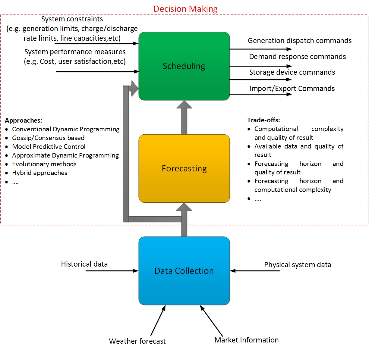 The efficiency, reliability, economics and sustainability of the production and distribution of electricity are the major concerns of all the power utilities and customers. Without large investments in new transmission capacity and generation sources to keep up with the growth in demand and corresponding investment, the existing early-twentieth-century-designed power grids would face a lot of challenges. An innovative and economical way of solving these challenges is the introduction of “microgrid” concept. Microgrids are electricity distribution systems consisting of local loads and distributed energy resources such as distributed generators, storage devices, and responsive demands as cheap spinning reserves. This flexibility of generation and demand available in the microgrids along with the access to renewables, can dramatically improve the power quality and reliability of the power networks at the distribution level. However, economically and intelligently managing these energy resources to improve the power quality, maximize the benefit of the unit owners while ensuring their privacy, requires advanced optimization and control technologies.
